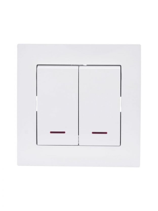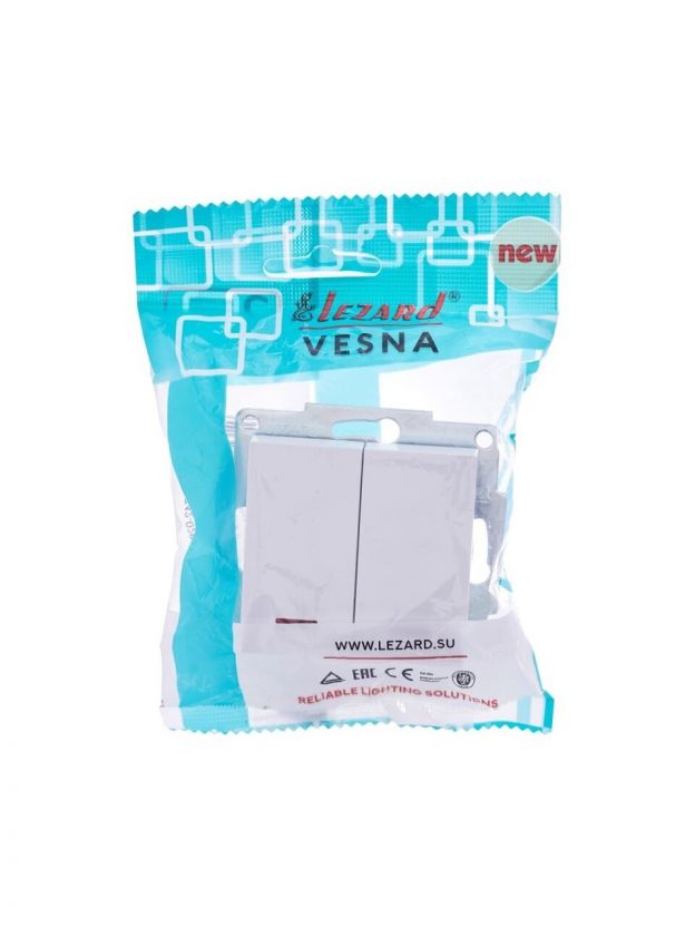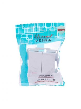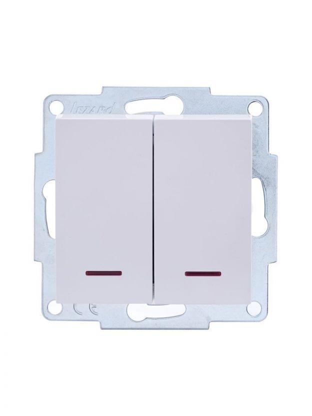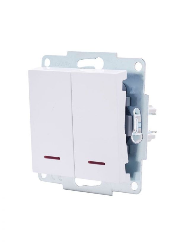 Выключатель скрытой установки, двухклавишный, без заземления, 10 А, 250 В, пластик, подсветка, IP20, белый, Lezard, Vesna, 742-0288-112