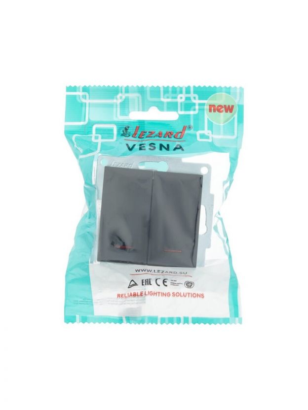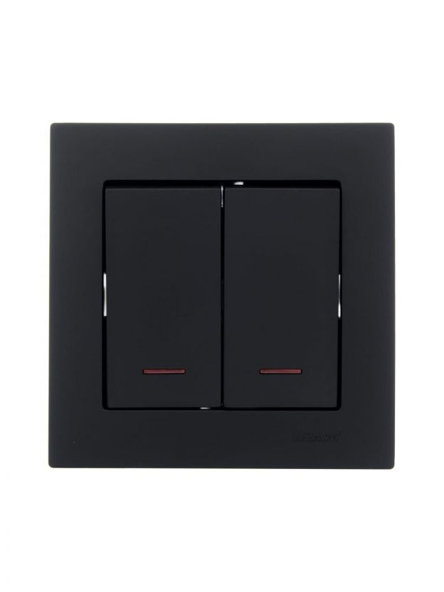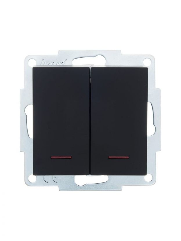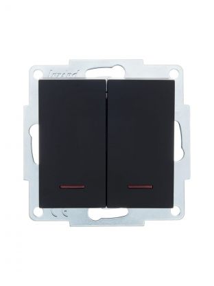 Выключатель скрытой установки, двухклавишный, без заземления, 10 А, 250 В, пластик, подсветка, IP20, черный, Lezard, Vesna, 742-4288-112