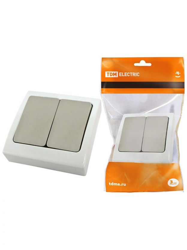 Новый выключатель 2 - клавишный на ток 10 А от фирмы TDM SQ1803-0102 предназначен для управление сетями освещения в производственных помещениях, помещениях с повышенной влажностью, а также на улице.