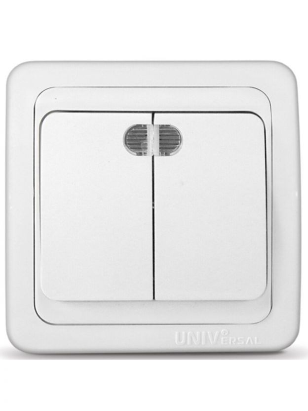 Выключатель скрытой установки, двухклавишный, без заземления, 10 А, пластик, подсветка, белый, UNIVersal, Валери, В0123