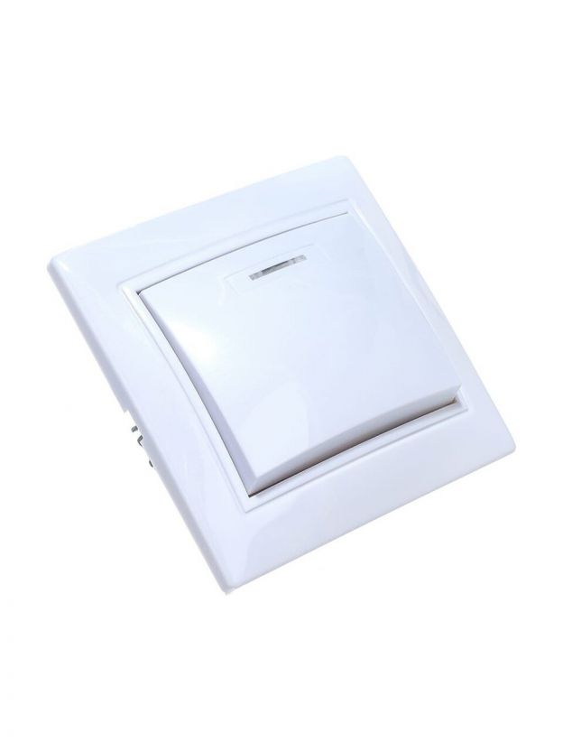 Выключатель скрытой установки, одноклавишный, 10 А, ABS пластик, подсветка, IP20, белый, UNIVersal, Севиль, С0121