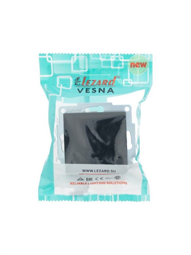 Выключатель скрытой установки, одноклавишный, без заземления, 10 А, 250 В, пластик, IP20, черный бархат, Lezard, Vesna, 742-4288-100