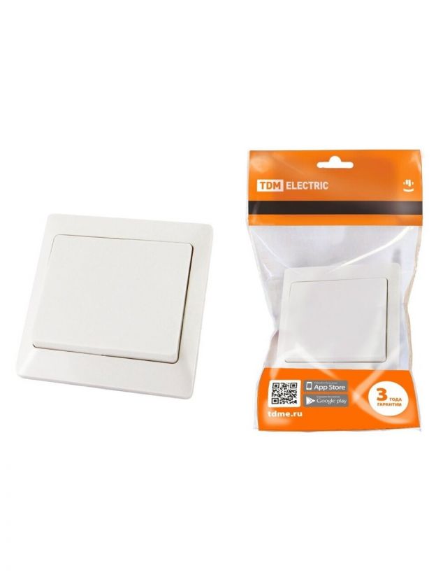 Выключатель скрытой установки, одноклавишный, без заземления, 10 А, белый, TDM Electric, Ильмень, SQ1823-0001
