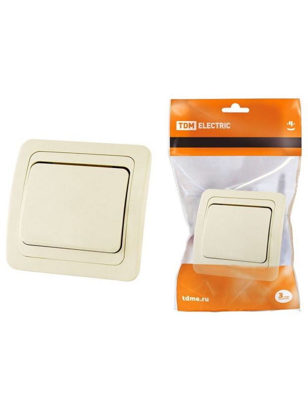 Выключатель скрытой установки, одноклавишный, без заземления, 10 А, слоновая кость, TDM Electric, Валдай, SQ1804-0101