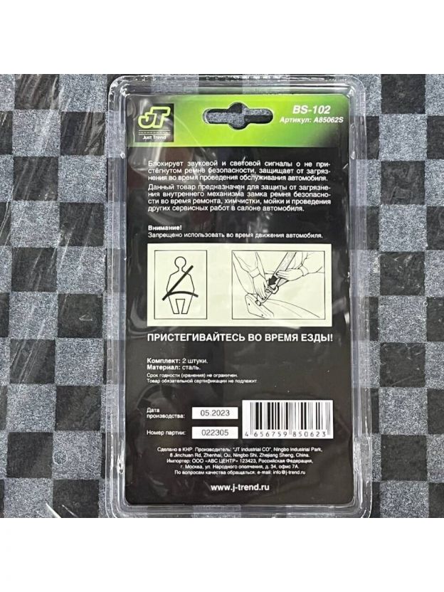 Блокирует звуковой и световой сигналы о не пристёгнутом ремне безопасности, защищает от загрязнения во время проведения обслуживания автомобиля. Данный товар предназначен для защиты от загрязнения внутреннего механизма замка ремня безопасности во время ремонта, химчистки, мойки и проведения других сервисных работ в салоне автомобиля. Внимание! Запрещено использовать во время движения автомобиля.