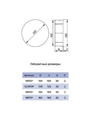 Заглушка вентиляционная пластик, установочный диаметр 125 мм, ERA, 12,5PDP