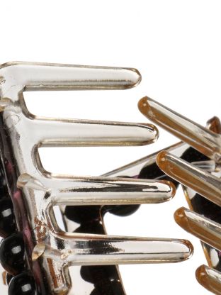 Заколка выполнена из прочного пластика с гладкой отделкой, декорирована искусственным жемчугом. Благодаря надёжной пружине подходит для тонких и средних волос, не травмирует локоны.