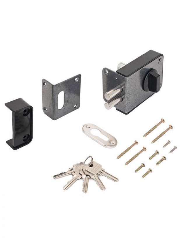 Накладной замок – это надежное средство защиты вашего имущества от несанкционированного доступа. Этот вид замков крепится непосредственно на поверхность двери, обеспечивая дополнительную защиту и удобство использования. В отличие от врезных замков, накладные замки не требуют специальных отверстий в дверном полотне, что делает их установку простой и быстрой. Характеристики: Удаление ключевого отверстия: 60 мм. Количество ригелей: 2. Размер ригеля: 12 мм. Количество ключей: 5. Преимущества: Корпус замка изготавливается из прочных материалов, что позволяет ему противостоять физическим воздействиям и ржавчине. Ригель надежно фиксирует дверь в закрытом состоянии, усиливая безопасность помещения и препятствуя попыткам взлома. Все компоненты замка разрабатываются и проверяются для достижения длительного срока службы и высокой производительности. Расстояние между осями замка соответствует стандартам большинства дверей, делая его подходящим для различных типов дверей. Покрытие замка защищает его от воды, кислот и других едких соединений, предупреждая образование ржавчины и коррозии. Оно также повышает устойчивость к износу, что имеет особое значение для частей, подверженных интенсивной эксплуатации. Это улучшает функциональность устройства, продлевает срок его использования и придаёт ему красивый внешний вид.
