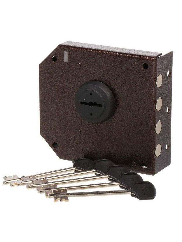 Замок накладной дверной, Эльбор, Базальт 1.05.51.5.5, 5252, тяжелый, сувальдный, 5 ключей, универсальный, антик медь