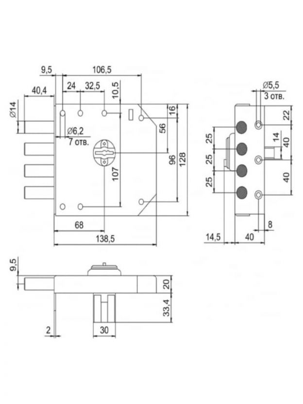 Накладной замок Эльбор Базальт 1.05.51.5.5 для дверей любого типа. В замках Эльбор серийно применяются защитные системы, обеспечивающие надежную устойчивость замков к криминальному открыванию и взлому. Использование таких систем позволяет защитить замок от большинства распространённых методов взлома. Комплектация: комплект ключей, накладка из полированной нержавеющей стали, пластмассовая шторка. Характеристики: Материал: сталь. Тип механизма секретности: сувальдный. Тип запирания: не автоматическое. Направление открывания двери: левое/правое. Толщина двери: 30-60 мм. Материал двери: металлические и деревянные. Тип ключа: сувальдный. Форма ригеля: цилиндр. Количество ригелей: 4 шт. Диаметр ригелей: 14 мм. Вылет ригеля: 40 мм. Количество ключей: 5 шт. Размер (ДхШхГ): 128х138.5х40 мм. Удаление ключевого отверстия (Backset): 68 мм. Преимущества: Высший 4 класс по ГОСТ. Возможность установки замка на левую и правую стороны двери. Защита от криминального и силового взлома, высверливания, выдавливания. Стальной замок Эльбор Базальт выполнен из качественного материала, который не поддается коррозии. В механизм включён набор скреплённых между собой пружинящих пластинок – сувальд, каждая из которых имеет свой уникальный вырез. Кроме того, в конструкции применяются защитные шторки, реагирующие только на точную конфигурацию ключа и блокирующее устройство, запирающее механизмы замка намертво, в том случае, когда его касается отмычка.