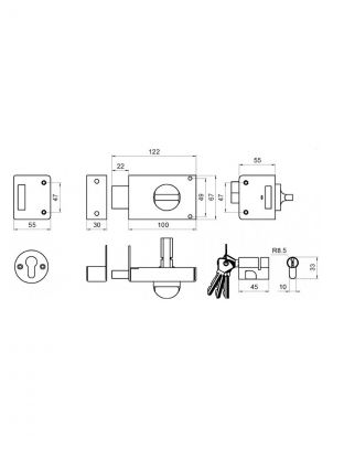 Накладной замок «Омега-ЗН-1» горизонтальный предназначен для установки на входные двери квартир, домов и общественных зданий. Подходит для монтажа на дверные полотна толщиной от 35 мм до 65 мм. Корпус и основная часть деталей выполнены из стали. Изделие прошло антикоррозийную обработку. Для отпирания и запирания используется рукоятка (задвижка выдвигается при помощи поворота рукоятки в правую сторону). Особенности замка: Высота корпуса — 110 мм, толщина — 80 мм. Цвет корпуса — «медь». Количество задвижек — 1 шт. Глубина личинки: 4.5 см. Глубина верхней части 5.5 см. Расстояние до центра личинки: 5.5 см. Расстояние до личинки: 5 см.