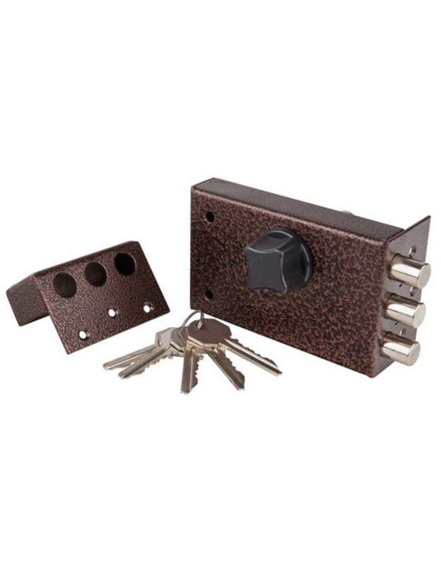 Накладной замок фиксируется на поверхности двери посредством шурупов, что делает процесс установки оперативным и лёгким. Это подходит для тех, кто не обладает опытом в установке замков или предпочитает экономить время на данном процессе.