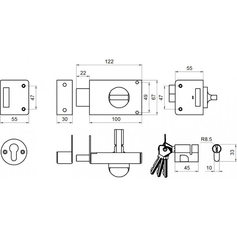Замок универсален и подходит как для левых, так и для правых дверей, поскольку цилиндровый механизм можно переставить в корпусе замка.