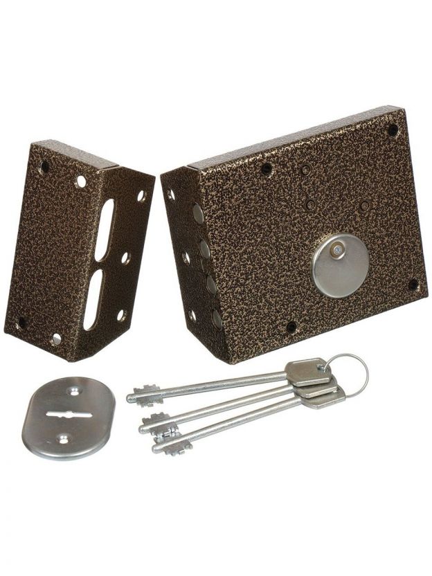Накладной замок для двери Зенит имеет сувальдный механизма секрета обеспечивая повышенную секретность и высокие охранные свойства замка. Подходит для установки в деревянные и металлические двери. Характеристики: Тип замка: накладной; Тип механизма секретности: сувальдный; Тип запирания: не автоматическое; Направление открывания двери: левое/правое; Max толщина двери: 55 мм; Min толщина двери: 35 мм; Количество ключей: 3 шт; Форма ригеля: цилиндр; Количество ригелей: 4 шт; Длина: 130 мм; Ширина: 110 мм; Глубина: 19 мм. Преимущества: Устройство сувальдного замка таково, что попадание пыли, грязи в скважину для него некритично; Такие замки неприхотливы, при аккуратном обращении безотказно служат много лет и обеспечивают достаточный уровень защиты объекта; Основным преимуществом накладного замка является то, что базовую часть замка не требуется врезать непосредственно в дверное полотно, а нужно всего лишь закрепить с внутренней стороны.