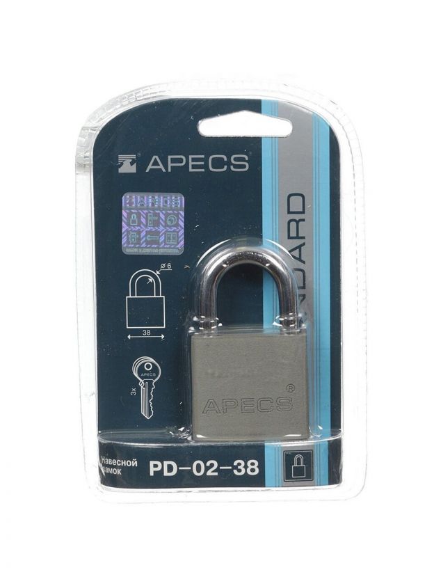 Замок навесной Apecs, PD-02-38, 17560, цилиндровый, 3 ключа