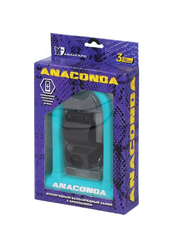 Замок велосипедный дуговой, Авангард, Anaconda Т608, 14 мм, сталь, с креплением на раму, силикон, всепогодный, голубой, 14 851