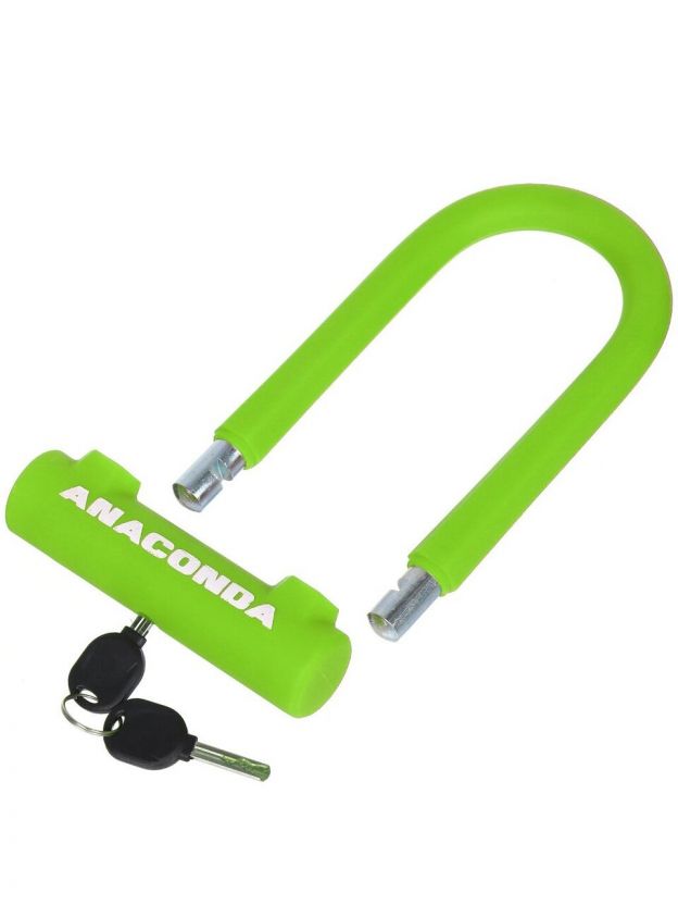 Замок велосипедный дуговой, Авангард, Anaconda Т608, 14 мм, сталь, с креплением на раму, силикон, всепогодный, зеленый, 14854
