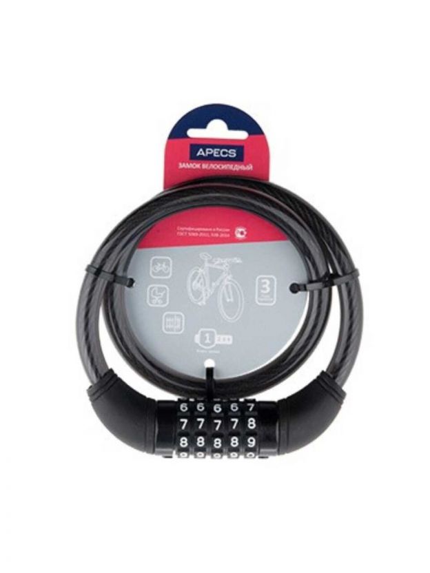 Замок велосипедный тросовый, Apecs, PD-83-65, кодовый, 650 мм