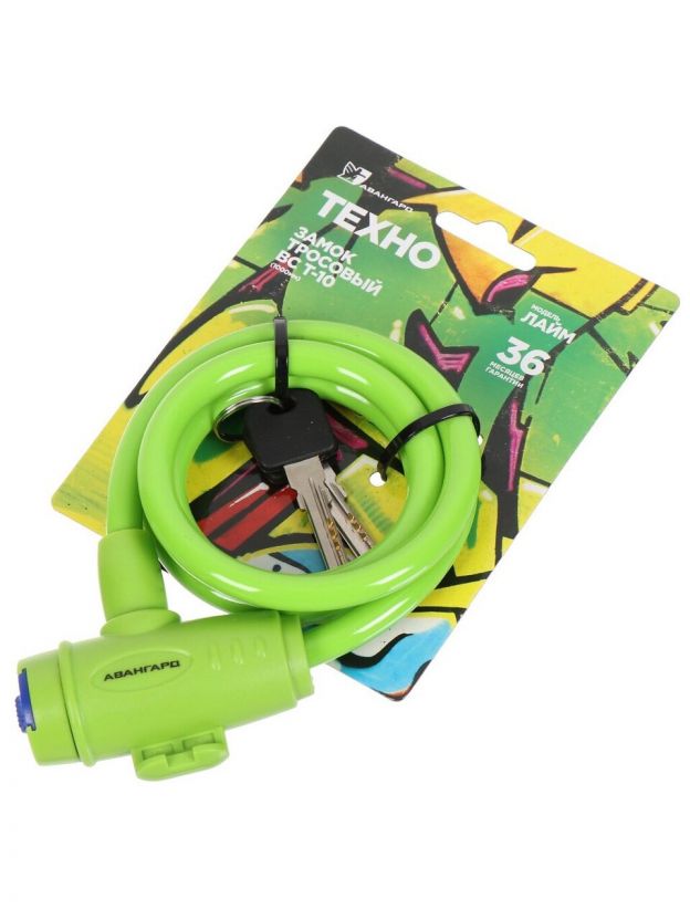 Замок велосипедный тросовый, Авангард, Техно, 1000 мм, ВС-Т10, лайм, 7323