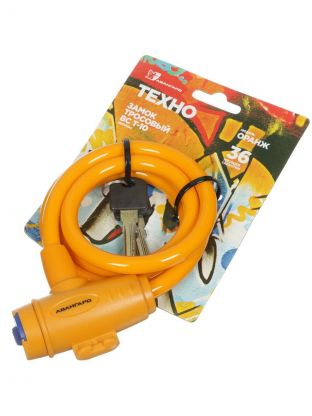 Замок велосипедный тросовый, Авангард, Техно, 1000 мм, ВС-Т10, оранжевый, 7 322