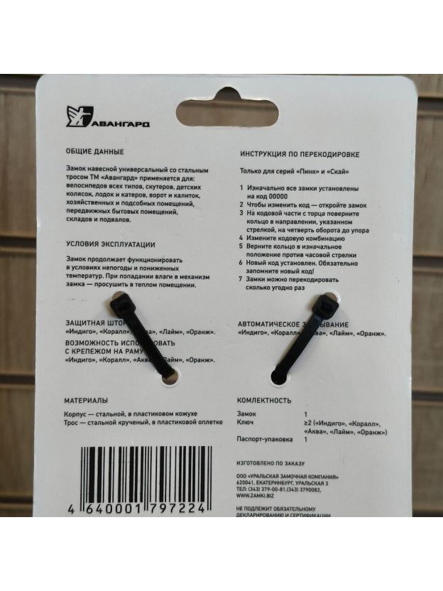 Навесной замок Авангард состоит из прочного стального троса в ПВХ-оболочке. Замок защитит вас от кражи велосипеда или коляски во время стоянки.