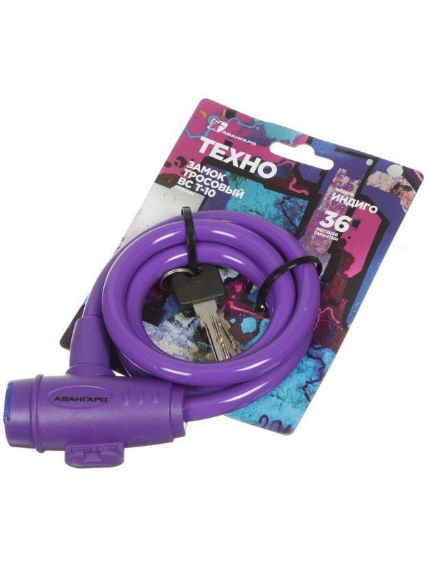 Замок велосипедный тросовый, Авангард, Техно, 1000 мм, индиго, ВС-Т10
