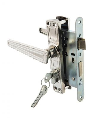 Замок врезной с ручками предназначен для установки в деревянные двери толщиной до 45 мм, правого и левого открывания. Возврат ручек за счет дополнительной пружины в корпусе замка.