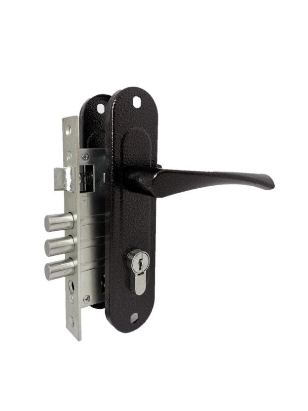Замок врезной с ручками предназначен для установки в деревянные двери толщиной до 45 мм, правого и левого открывания.