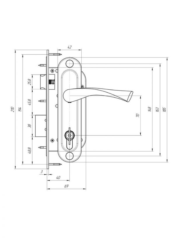 Замок врезной с ручками предназначен для установки в двери толщиной до 45 мм, правого и левого открывания;