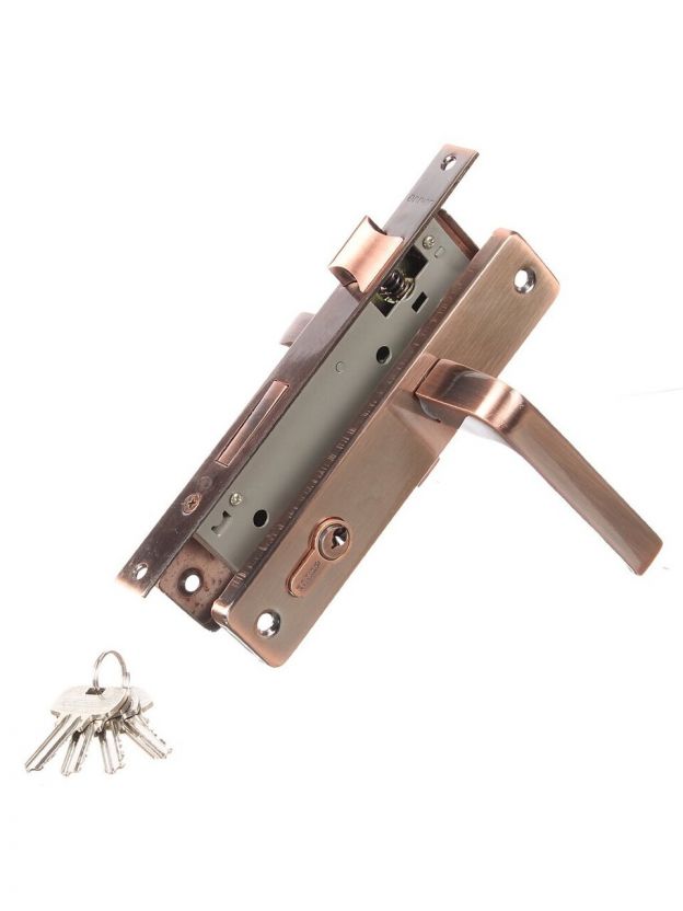 Замок врезной Аллюр, 126/1 AC, 1072, ручка в комплекте, цилиндровый, старый медный