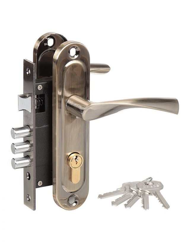 Замок врезной Apecs, 1023/60-AB, 16812, ручка в комплекте, цилиндровый, бронзовый