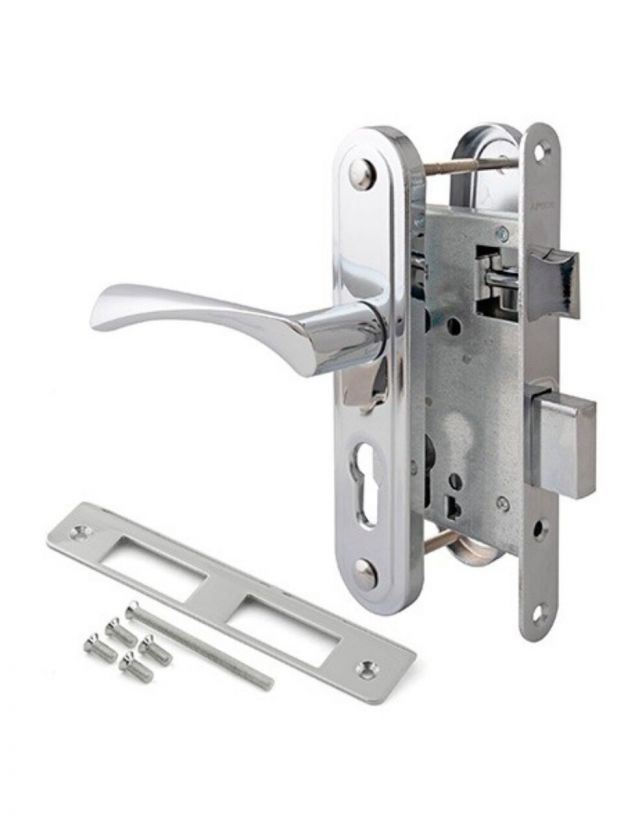 Замок врезной Apecs, 1623-CR, 13912, ручка в комплекте, цилиндровый, универсальный, хром