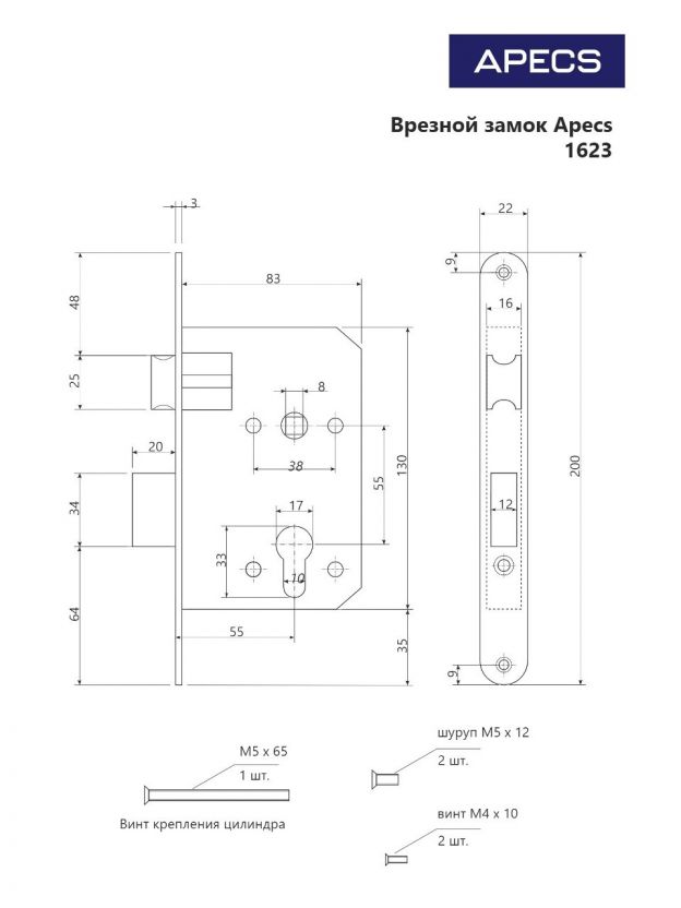 Врезной замок Apecs 1623-AC изготавливается в Китае на современном высокотехнологичном предприятии. Относится к категории эконом, но при этом имеет весьма солидные технические характеристики, что позволяется устанавливать его как на внутренних, так и на внешних дверях.