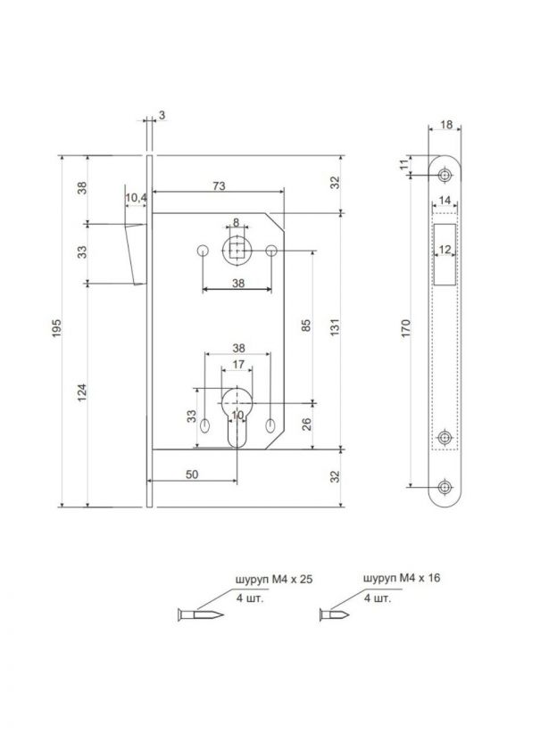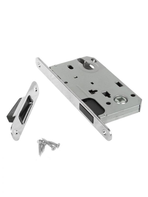 Замок врезной Apecs, 5300-M-CR, 15738, магнит, со смещенным ригелем, без ручек и сердцевины, хром