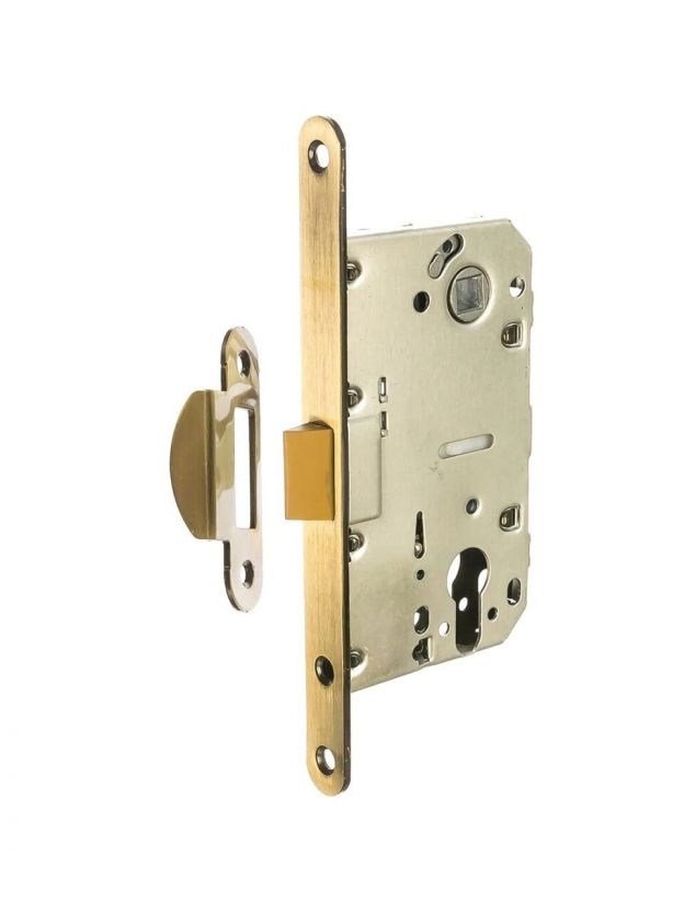 Врезной замок Apecs - полноразмерная защёлка для деревянных межкомнатных дверей с бесшумным пластиковым язычком. Превосходное качество покрытия, точность изготовления деталей, точность сборки, и современная конструкция замка дают высочайшие показатели работоспособности, превышающие самые высокие требования ГОСТ. В комплект необходимо будет подобрать цилиндровый механизм, длина которого будет зависеть от толщины двери.