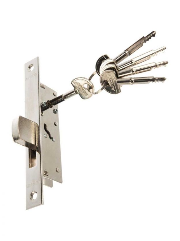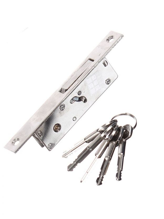 При строительстве нового дома или при замене входной двери каждый хозяин сталкивается с проблемой покупки надежного замка. Так как на замки врезные для входных дверей огромный выбор, иногда сложно не совершить ошибку. От решения зависит будущая безопасность жизни и имущества. Достаточно знать основную информацию о моделях, материалах и производителях, чтобы сделать разумное приобретение. Характеристики: Тип крепления: лицевая планка. Тип ригелей: прямоугольный. Вылет ригелей: 23 мм. Удаление ключевого отверстия: 20 мм. Тим механизма секретности: цилиндровый. Тип цилиндрового механизма: под крестообразный ключ. Защелка: отсутствует. Количество ключей: 5 шт. Автоматическое запирание: нет. Количество точек запирания: 1. Цвет: хром. Материал: сталь.