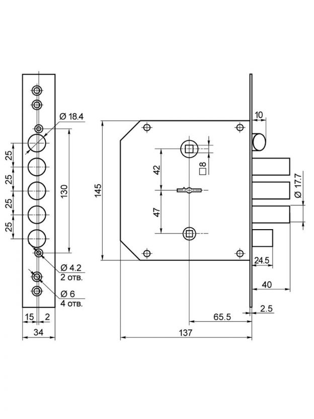 Надежный 6-сувальдный замок самого высокого 4 класса. Подходит для установки в гаражные ворота, калитки, а также металлические двери с левым открыванием.