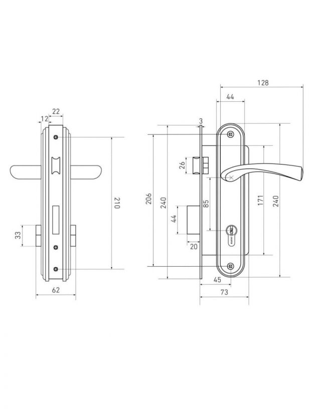 Замок врезной с цилиндровым механизмом и фалевыми ручками предназначен для установки на внутренние и наружные двери левого и правого исполнения общественных зданий и жилых помещений. Замок используется на дверях, открывающихся наружу и внутрь.