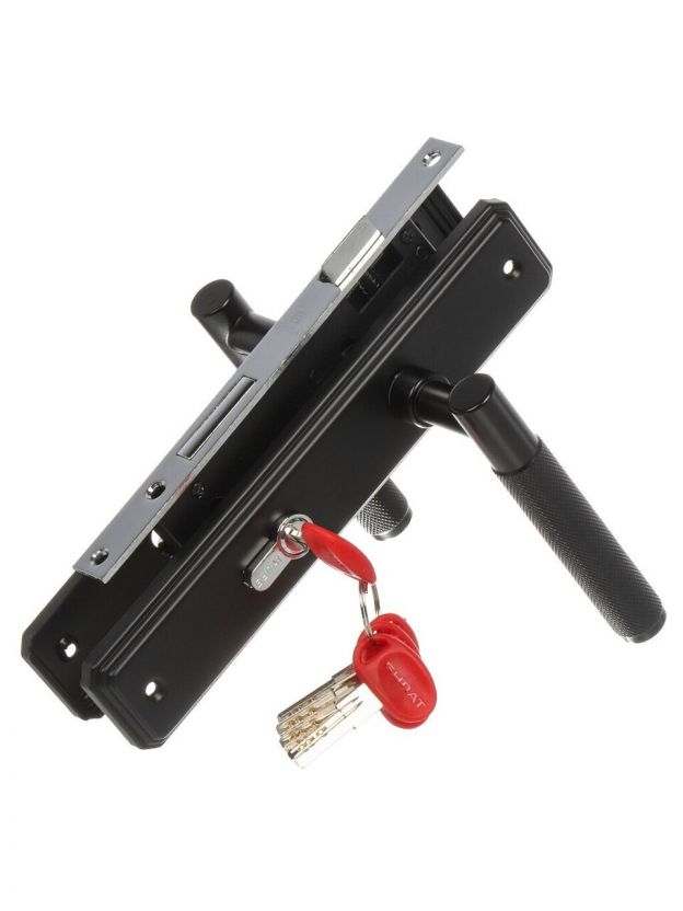 Замок врезной Булат, ЗВ4-1.70.02.02 Ферона, 15 408, ручка в комплекте, цилиндровый, 5 ключей, черный