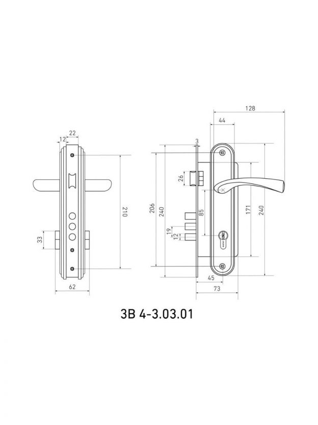 Замок врезной Булат ЗВ4-3.03.01 Номос с цилиндровым механизмом и фалевыми ручками предназначен для установки на внутренние и наружные двери левого и правого исполнения. Подходит для общественных зданий и жилых помещений. Замок используется на дверях, открывающихся внутрь и наружу.