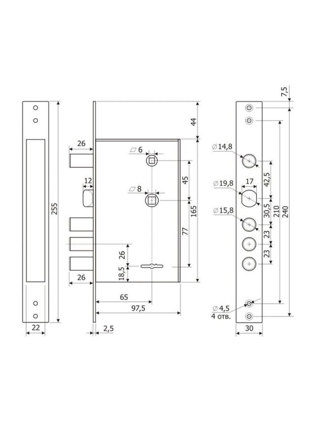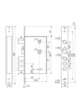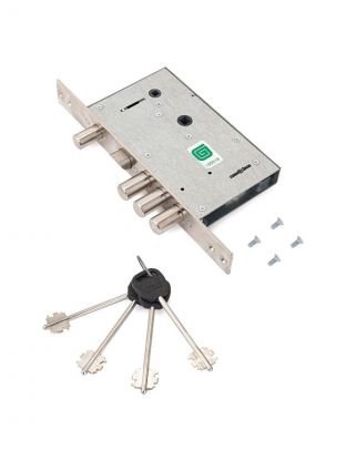 Врезной замок - это устройство, которое устанавливается непосредственно в дверное полотно. Он является неотъемлемой частью системы безопасности и обеспечивает высокий уровень защиты от проникновения злоумышленников. Характеристики: Удаление ключевого отверстия: 65 мм. Межосевое расстояние: 77 мм. Количество ригелей: 4. Форма ригелей: круглый. Размер ригеля: 15,8 мм. Преимущества: Корпус замка изготавливается из прочных материалов, что позволяет ему противостоять физическим воздействиям и ржавчине. Ригель надежно фиксирует дверь в закрытом состоянии, усиливая безопасность помещения и препятствуя попыткам взлома. Все компоненты замка разрабатываются и проверяются для достижения длительного срока службы и высокой производительности. Расстояние между осями замка соответствует стандартам большинства дверей, делая его подходящим для различных типов дверей. Покрытие замка защищает его от воды, кислот и других едких соединений, предупреждая образование ржавчины и коррозии. Оно также повышает устойчивость к износу, что имеет особое значение для частей, подверженных интенсивной эксплуатации. Это улучшает функциональность устройства, продлевает срок его использования и придаёт ему красивый внешний вид.