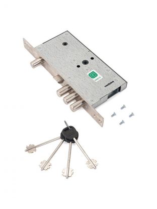 Врезной замок - это устройство, которое устанавливается непосредственно в дверное полотно. Он является неотъемлемой частью системы безопасности и обеспечивает высокий уровень защиты от проникновения злоумышленников. Характеристики: Тип механизма секретности: сувальдный. Удаление ключевого отверстия: 65 мм. Межосевое расстояние: 77 мм. Количество ригелей: 3. Форма ригелей: круглый. Размер ригеля: 15,8 мм. Количество ключей: 4. Преимущества: Корпус замка изготавливается из прочных материалов, что позволяет ему противостоять физическим воздействиям и ржавчине. Ригель надежно фиксирует дверь в закрытом состоянии, усиливая безопасность помещения и препятствуя попыткам взлома. Все компоненты замка разрабатываются и проверяются для достижения длительного срока службы и высокой производительности. Расстояние между осями замка соответствует стандартам большинства дверей, делая его подходящим для различных типов дверей. Покрытие замка защищает его от воды, кислот и других едких соединений, предупреждая образование ржавчины и коррозии. Оно также повышает устойчивость к износу, что имеет особое значение для частей, подверженных интенсивной эксплуатации. Это улучшает функциональность устройства, продлевает срок его использования и придаёт ему красивый внешний вид.