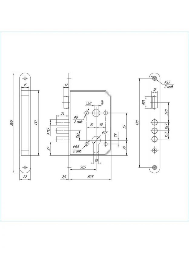 Расстояние между отверстиями крепления планки: 178 мм.