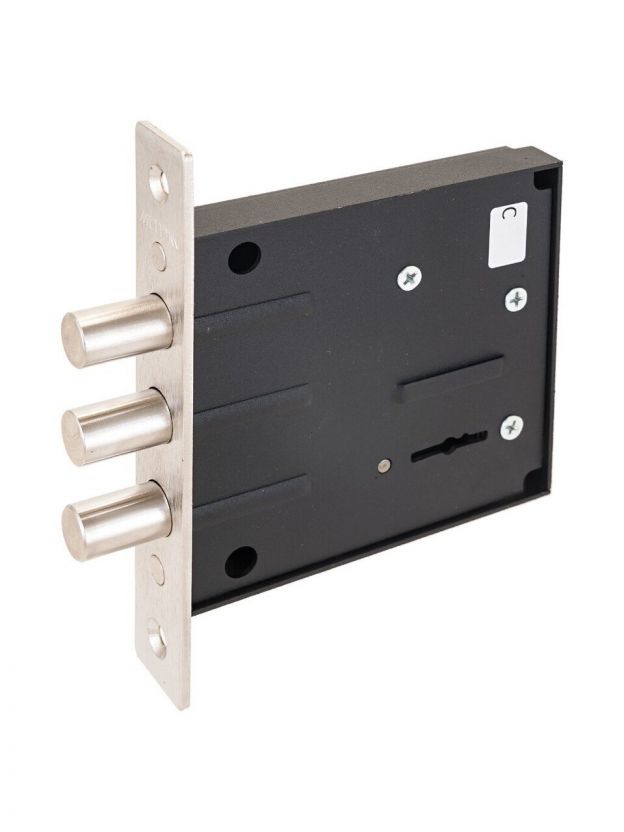Врезной замок - это устройство, которое устанавливается непосредственно в дверное полотно. Он является неотъемлемой частью системы безопасности и обеспечивает высокий уровень защиты от проникновения злоумышленников. Характеристики: Удаление ключевого отверстия: 76 мм. Количество ригелей: 3. Форма ригелей: круглый. Размер ригеля: 13,5 мм. Преимущества: Корпус замка изготавливается из прочных материалов, что позволяет ему противостоять физическим воздействиям и ржавчине. Ригель надежно фиксирует дверь в закрытом состоянии, усиливая безопасность помещения и препятствуя попыткам взлома. Все компоненты замка разрабатываются и проверяются для достижения длительного срока службы и высокой производительности. Расстояние между осями замка соответствует стандартам большинства дверей, делая его подходящим для различных типов дверей. Покрытие замка защищает его от воды, кислот и других едких соединений, предупреждая образование ржавчины и коррозии. Оно также повышает устойчивость к износу, что имеет особое значение для частей, подверженных интенсивной эксплуатации. Это улучшает функциональность устройства, продлевает срок его использования и придаёт ему красивый внешний вид.