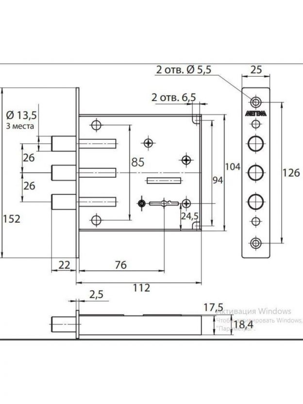 Замок врезной Меттэм, ЗВ8 842.0.0, 10276, без ручки, сувальдный, 3 ригеля