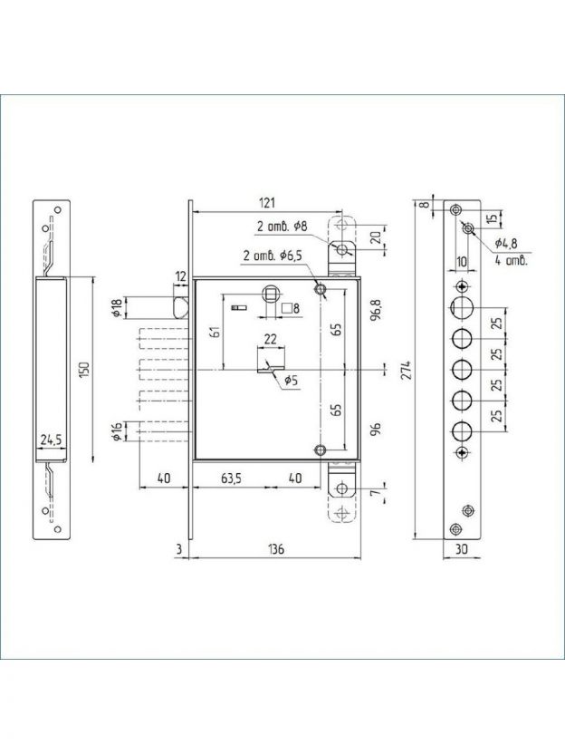 Расстояние между осями замка соответствует стандартам большинства дверей, делая его подходящим для различных типов дверей.