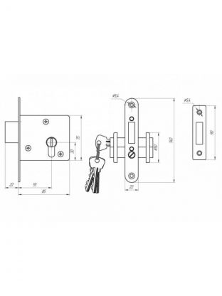 Врезной замок с цилиндровым механизмом секрета. Стальной корпус с надежным антикороззийным покрытием. Прямоугольный ригель. Комплектуется цилиндровым механизмом 70 мм. Готовый для установки комплект. Соответствует 2 классу по ГОСТ 5089-2011. Дополнительная информация: Болты входят в комплект.