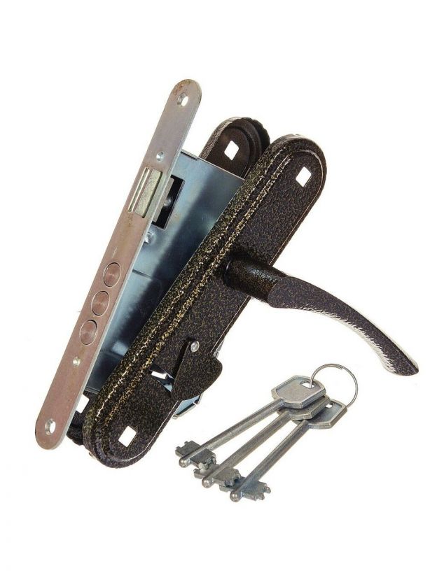 Замок врезной сувальдный универсальный с тремя стальными цилиндрическими ригелями диаметром 12 мм и защелкой класс 2 ГОСТ 5089-2011. Ручки-накладки покрыты полимерной краской. В ручки фалевые добавлены пружины и фиксаторы, что исключает «провисание» ручек и обеспечивает четкую фиксацию их положения. Предназначен для установки в деревянные и стальные двери толщиной до 50 мм, правого и левого открывания. Комплектуется тремя сувальдными ключами, ответной планкой и винтовыми стяжками.
