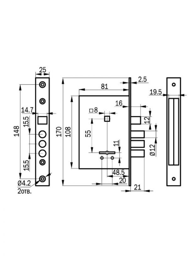 Межосевое расстояние замка является стандартным для большинства дверей, что делает этот замок универсальным и подходящим для широкого спектра дверей.