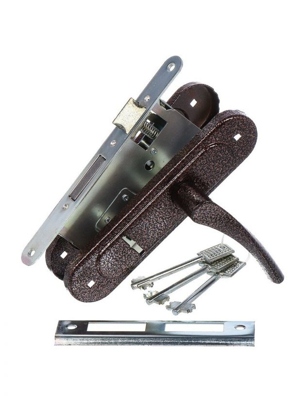 Замок врезной Птимаш, ЗВ9-4.07 (ЗВ9), 11 616, ручка в комплекте, сувальдный, универсальный, с пружиной, медь